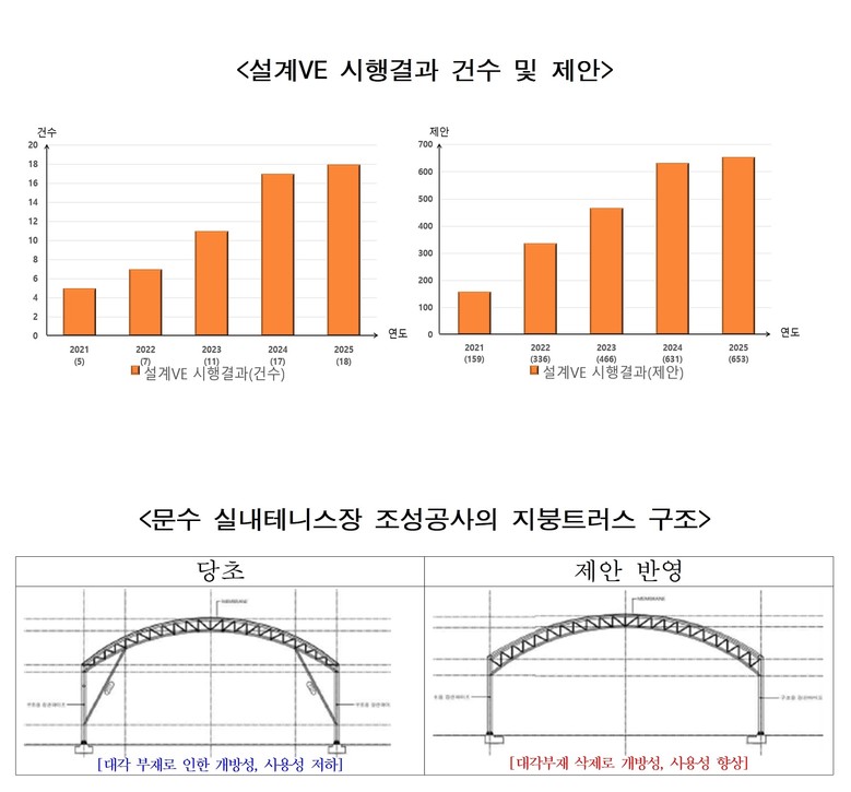 그 결과 대상사업이 지난 2022년 7건에서 2025년에는 18건으로 확대됐다. 전문가들이 제안한 공공시설의 설계 최적화 아이디어도 지난 2022년 336건에서 2025년 653건을 반영해 시설물의 가치를 향상시키고, 예산도 156억 원을 절감하는 성과를 거뒀다.