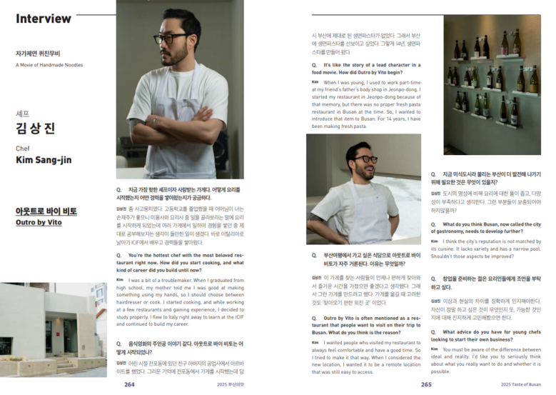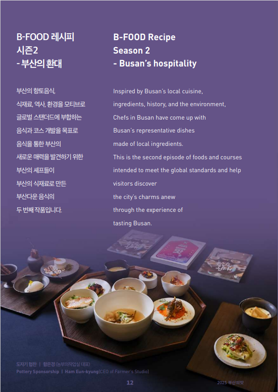 또한, 부산의 우수한 지역 식재료인 명지 대파, 대저 짭짤이토마토, 영도 조내기고구마를 활용한 「부산음식(B-FOOD) 레시피」도 담겨 있어 색다른 미식 경험을 선사한다.