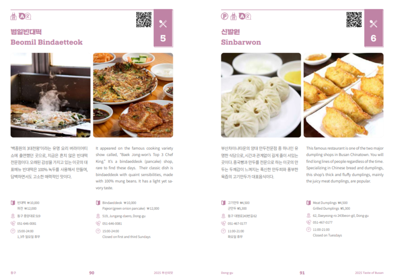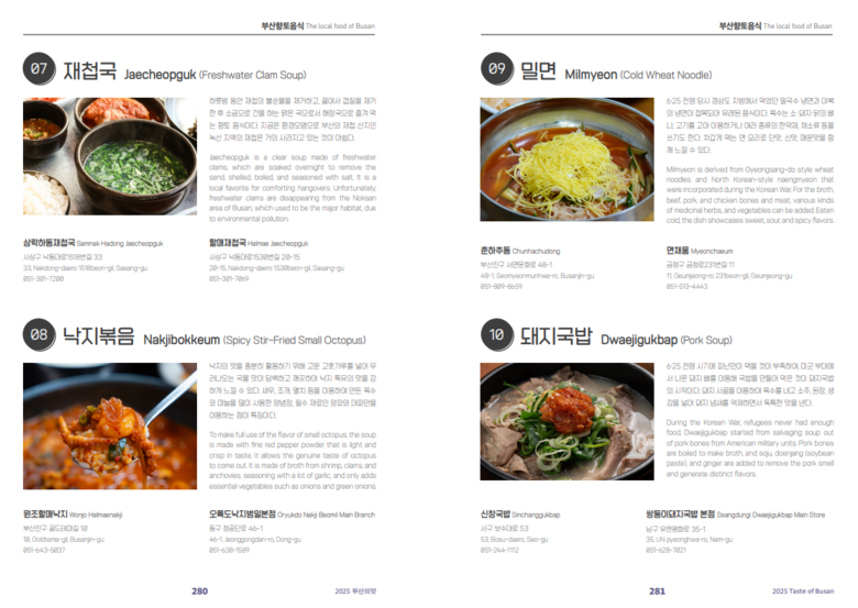 「2025 부산의 맛」 가이드 북은 부산관광포털 누리집(www.visitbusan.net>여행준비>가이드북앤(&)지도)에서 온라인으로 열람하거나 내려받을 수 있다.