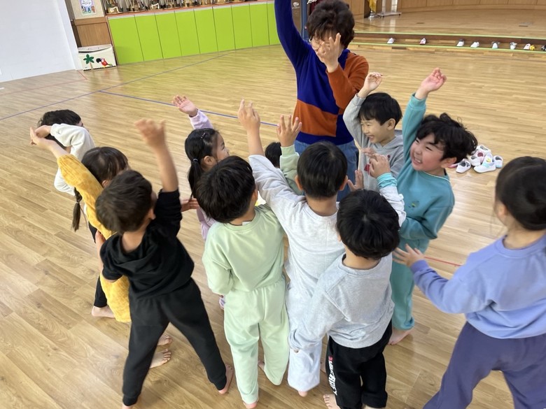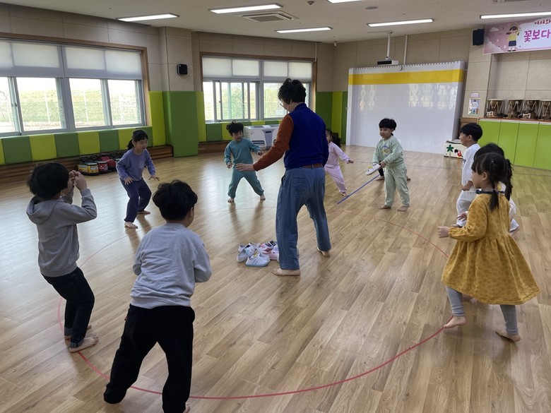 먼저, 유아들은 전래놀이 활동가분께 전래놀이의 의미와 종류에 대해 배워 보았으며, 연령별 수준에 맞춰 전래놀이를 직접 체험해 보았다. 꼬리 잡기, 2인 1조 무궁화 꽃이 피었습니다. 까막 잡기, 신발 뺏기 등 다양한 전래놀이를 직접 경험해 본 아이들은 “옛날 사람들은 어떻게 이런 놀이를 생각해낸 거지? 대단한 것 같아.”하며 전래놀이의 즐거움에 흠뻑 빠졌다.