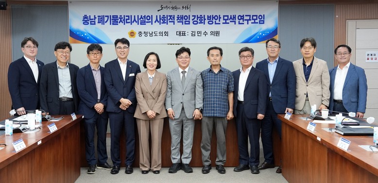 충남도의회 ‘충남 폐기물처리시설의 사회적 책임 강화 방안 모색 연구모임’(대표 김민수)은 18일 보건복지환경위원회 회의실에서 2차 회의를 열어, 폐기물처리시설 운영 현황을 점검하고 주민 지원 방안을 논의했다.
