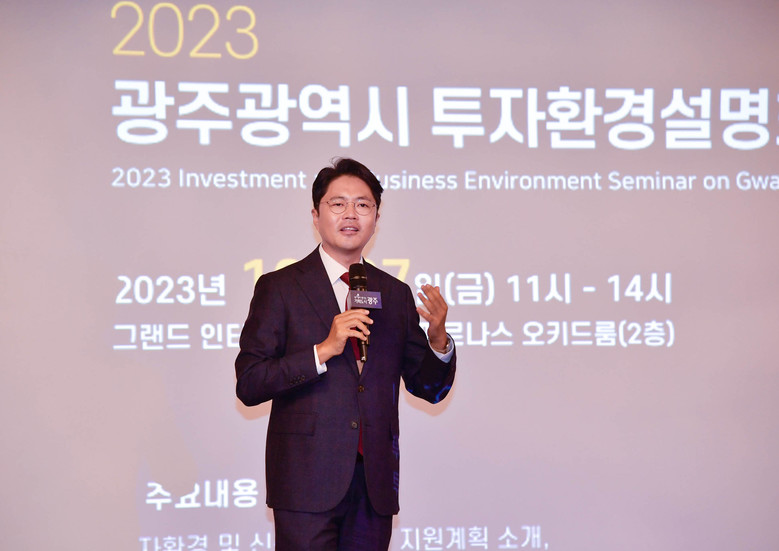 광주광역시(시장 강기정)는 27일 서울 그랜드인터컨티넨탈호텔에서 국내외 100여개 투자자들을 대상으로 광주 투자환경과 신산업 육성 및 지원 정책 등을 소개하는 투자환경설명회를 개최했다.