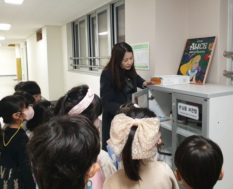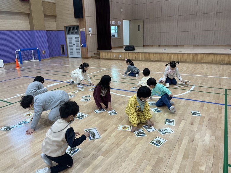 또한, 학교 공간을 친숙하게 여기며 공간을 혼자 찾아 갈 수 있도록 연습했다. 교장실에서 교장선생님과 대화 나누기, 교무실에서 교감샘 인터뷰하기, 분실물함 위치 알기, 분리수거 공간 둘러보기, 체육관에서 학교 상징 찾기 게임하기, 로비에서 초등학생 작품전시회 관람하기 등 초등학교 특별실의 이름과 기능을 알아보고, 할 수 있는 활동을 체험해보았다. 유아들에게 학교 공간에 대한 호기심과 탐구심을 자극하며 초등학교 구성원들과 관계를 맺는 좋은 기회가 되었다.