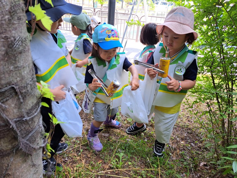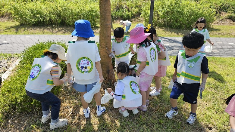 유아들은 직접 환경보호 조끼를 제작하고 입은 후 플라스틱과 담배꽁초 등 쓰레기를 줍고, 분리수거를 하는 일련의 과정에 직접 참여했다.