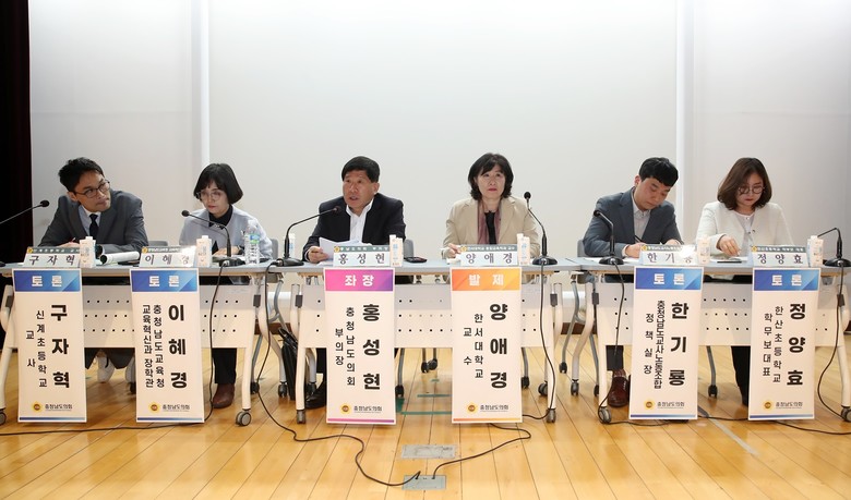 토론회는 홍성현 의원(천안1·국민의힘)이 좌장을 맡고, 양애경 한서대학교 교수가 주제 발표를 진행했다. 이어 구자혁 신계초등학교 교사, 한기룡 충남교사노동조합 정책실장, 이혜경 충남교육청 교육혁신과 장학관, 정양효 한산초등학교 학부모 대표가 토론자로 참여해 다양한 의견을 나누었다.
