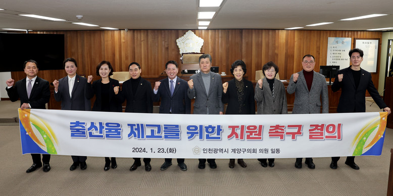 계양구의회는 결의안을 통해 ▶정부의 출산가정 지원 정책에서 소득 수준 제한 폐지 ▶출산과 육아휴직을 장려하는 사회 환경과 기업 문화 조성의 구체적인 추진계획 마련 ▶한국토지주택공사·인천도시공사와 적극적인 업무협약을 통한 신혼부부 및 다자녀 가구 주거 부담 완화 기금 조성 등을 요구했다.