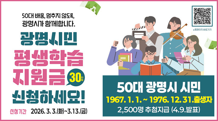 시는 오는 3월 3일부터 13일까지 11일간 ‘2026년 광명시민 평생학습지원금’ 신청을 받는다고 26일 밝혔다.