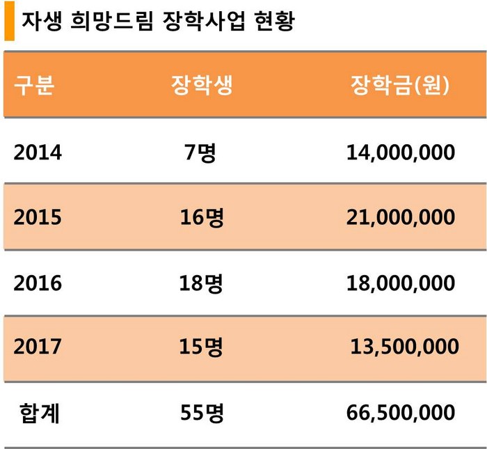 | ▲ [자료 2] 자생 희망드림 장학사업 현황 |