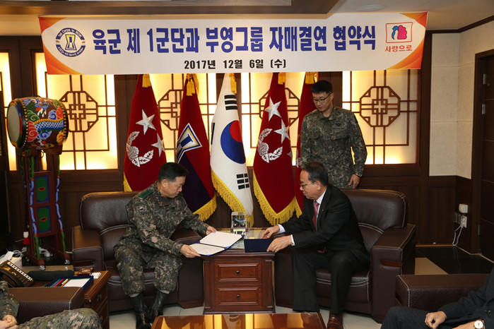 부영그룹(회장 이중근)은 6일 육군 1군단과 자매결연을 맺고 국군 장병들에 대한 적극적인 지원을 약속했다.