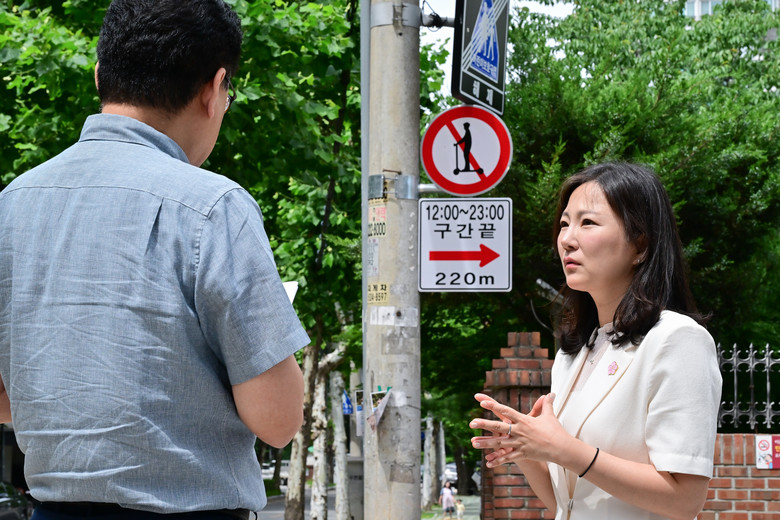 [서울 세계타임즈=이장성 기자] 국민의힘 윤영희 서울시의원은 24일 서울시가 추진 중인 ‘킥보드 없는 거리’ 시범사업 운영 현장을 직접 찾아 사업 진행 상황을 점검하고, 시민들의 반응을 청취했다. 이날 현장 점검에는 서울시 교통실과 보행자전거과, 개인형이동장치팀 등 관계 공무원이 함께 참여했다.