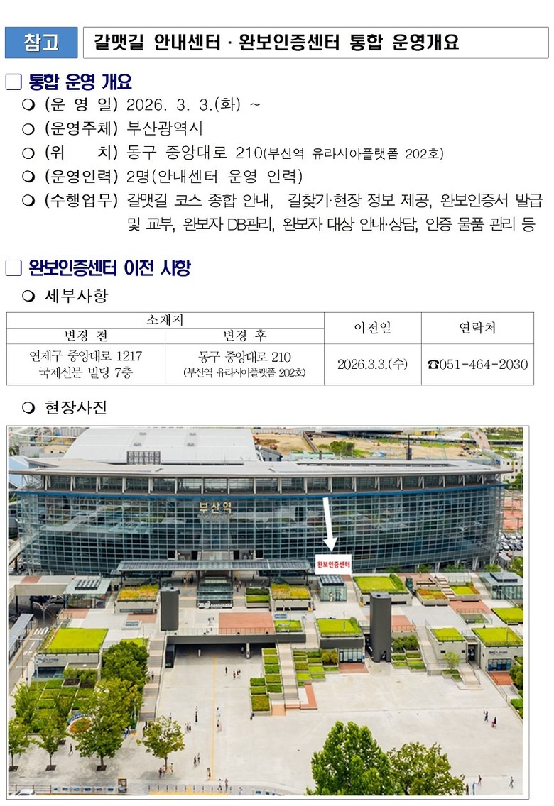 아울러, 시는 완보인증센터 이전과 부산시장 명의 첫 완보인증서 발급을 기념해 오는 3월 7일 북항친수공원에서 시민 700여 명과 걷기행사를 추진한다.