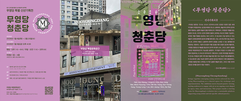 이번 ‘무영당 청춘당’ 전시는 대구시와 지역 문화예술가와의 협업을 통해 2026년 신진 아티스트로 선정된 청춘 세대 작가들이 무영당이라는 공간을 매개로 만나 교류하는 실험적 예술의 장으로 기획됐다. 예술가와 관객의 감각이 함께 호흡하는 새로운 전시 경험을 제안한다.