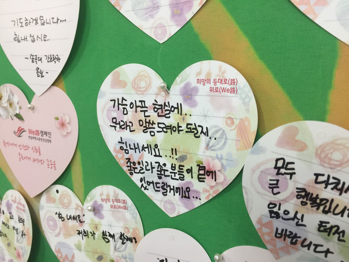 이날 전달식에서는 성금과 함께 병원을 이용하는 환자 및 고객들이 직접 작성한 We路(위로)캠페인 ‘희망의 메시지 카드’ 200장도 함께 전달했다. 카드에는 이재민들을 위로하고 희망을 주는 메시지들이 담겨 있다.
