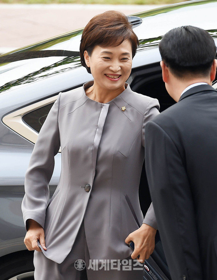 김현미 국토교통부 장관 후보자가 1일 오전 경기 과천정부청사 내 서울지방국토관리청으로 출근하고 있다. 2017.06.01.