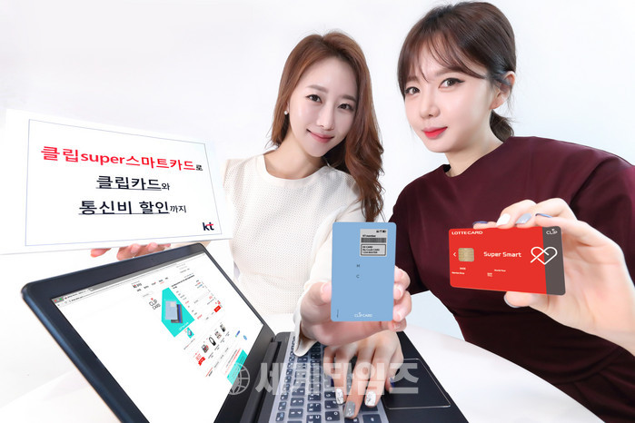 [세계타임즈 이영진 기자]KT는 롯데카드와 손잡고 스마트 카드 디바이스 클립카드(CLiP CARD)와 통신비 할인 등 다양한 혜택을 제공하는 '클립 수퍼(Super) 스마트 롯데카드'를 출시한다고 4일 밝혔다.