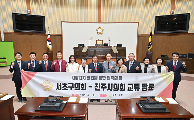 [서초구 세계타임즈=이장성 기자] 서초구의회(의장 고선재) 의장단은 4일, 진주시를 방문해 지역 대표 축제인 ‘진주남강유등축제’의 성공적인 개최를 축하하고, 두 의회 간 교류 확대와 협력 방안을 논의했다.