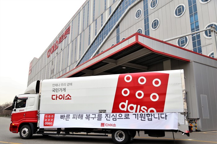 다이소는 7일 오전 화재로 큰 피해를 입은 이재민 가족들을 위해 주요 생필품이 담긴 행복박스 1,000가족분을 속초시청과 고성군청에 전달했다.