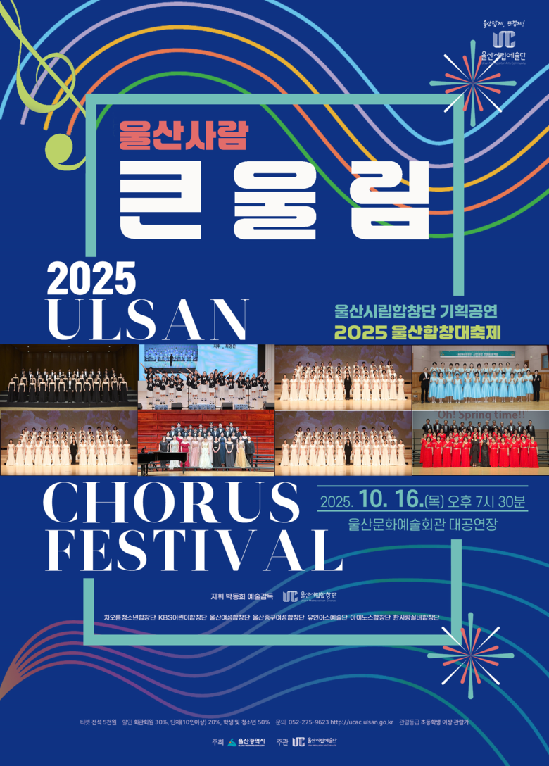 공연은 울산시립합창단(지휘 박동희)를 비롯해 차오름청소년합창단(지휘 최영은), 울산중구여성합창단(지휘 김성아), 유인어스합창단(지휘 하유나), 한사랑실버합창단(지휘 김은혜), 케이비에스(KBS)어린이합창단(지휘 최예솔), 울산여성합창단(지휘 김희정), 아이노스합창단(지휘 김동욱) 등 총 8개 합창단이 참여한다.