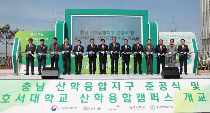 호서대학교는 16일 오후 당진 산학융합캠퍼스에서 3만3088㎡에 캠퍼스동과, 기업연구동, 기숙사동, 운동장 등으로 조성된 '산학융합캠퍼스 개교식 및 충남 산학융합지구 준공식'을 개최했다. 2017.03.17. (사진=호서대 제공)