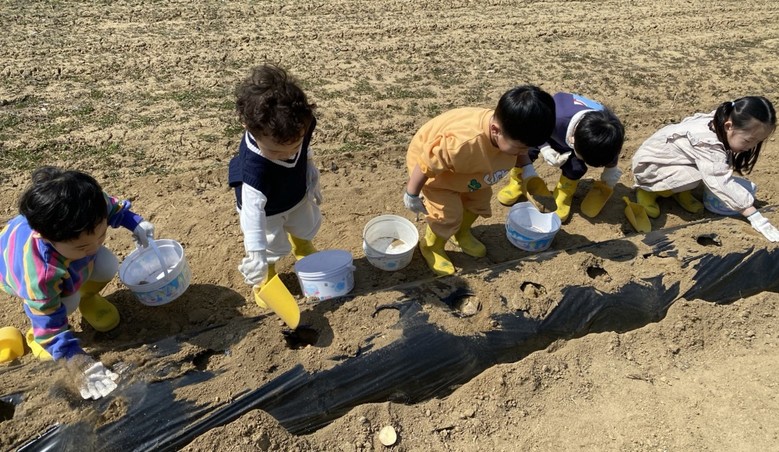 [아산시 세계타임즈=백택기 기자] 아산 흰돌유치원(원장 임지연)은 3월 14일(목)에 유치원 텃밭에서 감자 심기 체험활동을 진행하였다.