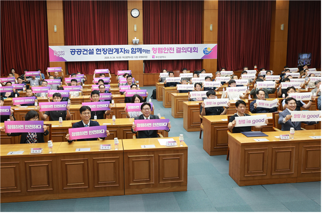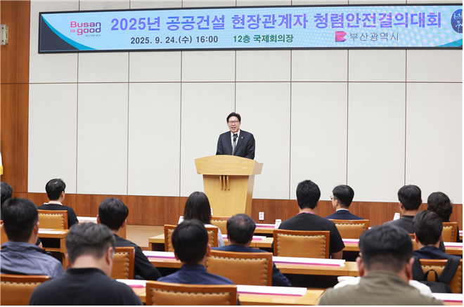 [부산 세계타임즈=이용우 기자] 부산시(시장 박형준)는 어제(24일) 오후 4시 시청 국제회의장에서 51개 공공 건설 현장 관계자 140여 명과 「청렴안전결의대회」를 개최했다고 밝혔다.