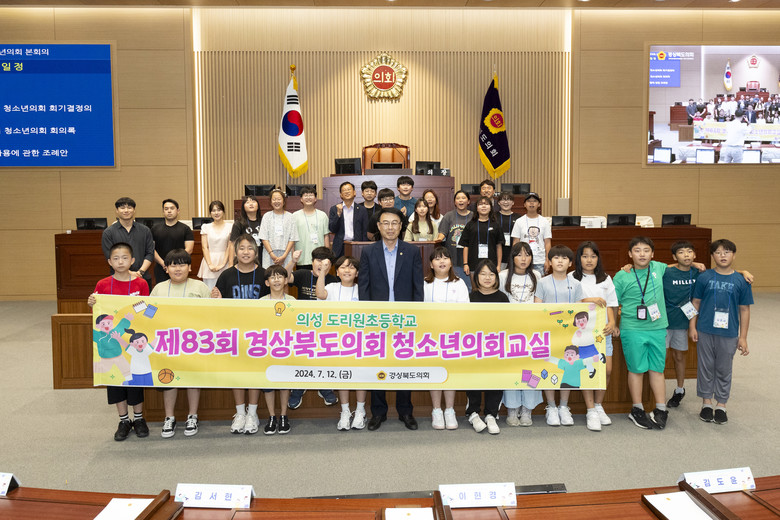 [경북 세계타임즈=한윤석 기자] 경상북도의회(의장 박성만)는 7월 12일(금) 경상북도의회 본회의장에서 의성 도리원초등학교 4~6학년 학생 30여명 등이 참석한 가운데 제83회 경상북도의회 청소년의회교실을 개최했다.