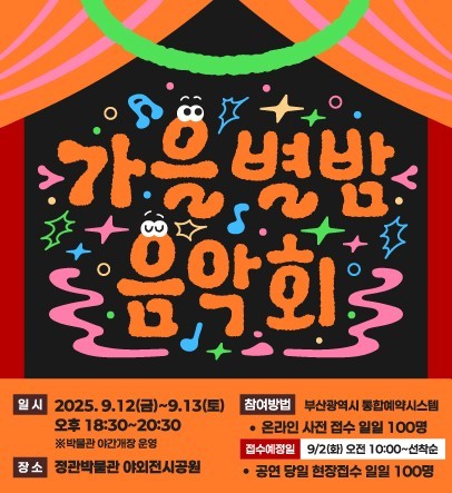 사연 및 음악·이벤트 신청은 9월 9일까지 접수하면 되며, 자세한 신청 방법은 정관박물관 누리집(museum.busan.go.kr/jeonggwan)에서 확인할 수 있다.