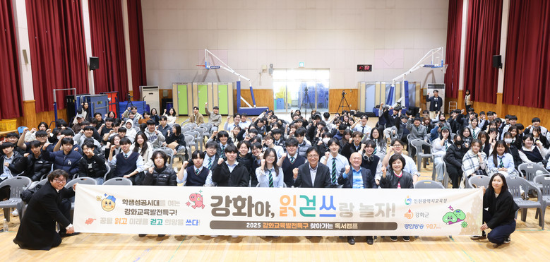 [인천 세계타임즈=심하린 기자] 인천광역시교육청(교육감 도성훈)은 11월 14일부터 12월 19일까지 강화군 초·중·고 3곳에서 인천교육공동체 600여 명을 대상으로 ‘2025 강화교육발전특구 찾아가는 독서캠프-강화야, 읽걷쓰랑 놀자!’를 운영한다고 밝혔다.