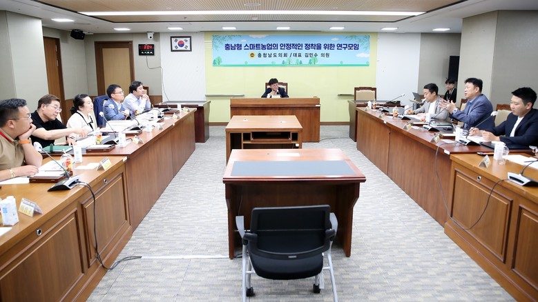 [충남 세계타임즈=백택기 기자] 충남도의회 ‘충남형 스마트농업의 안정적인 정착을 위한 연구모임’(대표 김민수)이 지난 4일 의회 회의실에서 1차 회의 및 연구용역 착수보고회를 가졌다.