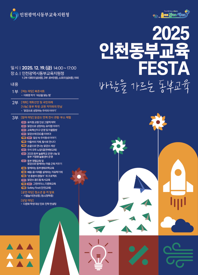이번 행사는 인공지능(AI) 시대를 대비해 동부 관내 유·초·중학생과 교직원이 참여해 인천동부교육의 운영 성과를 공유하고, 일상이 배움으로 이어지는 교육 경험을 나누기 위해 마련됐다.