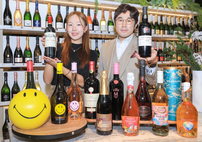 또 행사 기간 스마일리 와인 1병과 스마일리 캐릭터 모양의 아이스버킷 1개로 구성된 '스마일리 와인 아이스버킷 기프트팩'(3만 5,000원)을 판매하며, 샤도네이·소비뇽 블랑·로제 등 총 6가지 패키지를 준비했다.