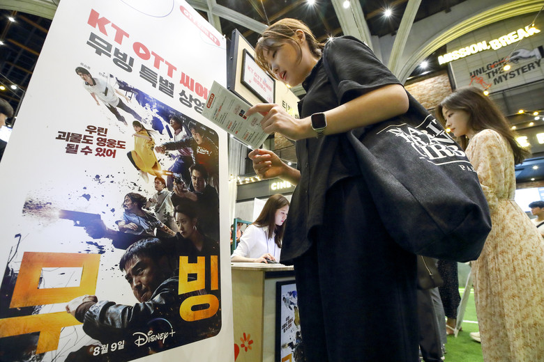 한편, KT는 많은 고객들이 디즈니+를 이용해 볼 수 있도록 11일부터 9월 30일까지 디즈니+3개월 이용권 제공하는 프로모션을 진행한다. ‘5G 초이스 요금제’, ‘Y덤 중 월 63,000원 이상 이용 고객’, ‘패밀리박스 최신 앱 이용 고객’이 대상이다. 또한 KT에서 디즈니+를 이용하는 고객은 누구나 11일부터 31일까지 ‘무빙’ 콜라보 이벤트에 참여할 수 있다. 추첨을 통해 △아시아권 해외 디즈니랜드 여행권 △현대백화점 디즈니스토어 1호점 자유 이용 상품권 △강풀의 원작 단행본 세트 △다양한 기프티쇼 등 풍성한 혜택을 제공한다. 자세한 사항은 KT 홈페이지에서 확인할 수 있다.