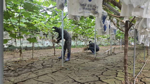 [강원도 세계타임즈=김민석 기자] 강원특별자치도(도지사 김진태) 동물방역과와 동물위생시험소 소속 수의직 공무원 10명은 8월 9일(토) 경기도 가평군 청풍면 포도재배농가를 찾아 수해 피해 복구 자원봉사 활동을 펼쳤다.