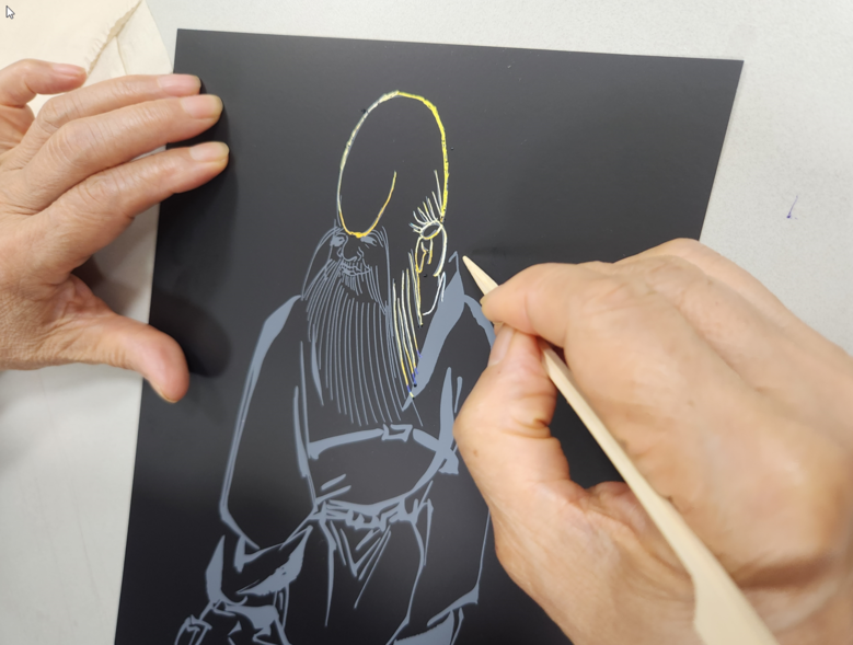 스크래치 페이퍼 체험은 색이 숨어 있는 특수 용지 위에 유물을 그려내는 방식으로, 참여자들은 문화유산에 대한 이해를 높이는 동시에 창작의 즐거움도 경험하게 된다.