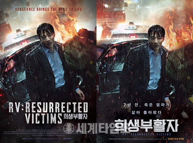 또 북미 포스터는 국내 포스터와 각도를 달리해 역동적인 장면을 담아냈고, 영어 제목 'RV: Resurrected Victims'가 크게 적혀 있고 한글 '희생부활자'는 작게 적혀 있어 차이를 보인다.