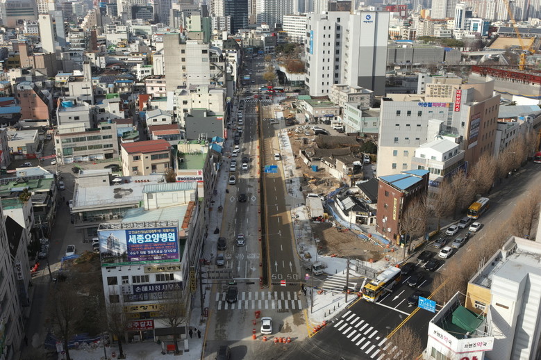 동구 광산길은 국립아시아문화전당 주진입도로로, 기존 2차로에서 5차로로 확장하고 도로 양측에 폭 3~4m의 보도를 조성했다.