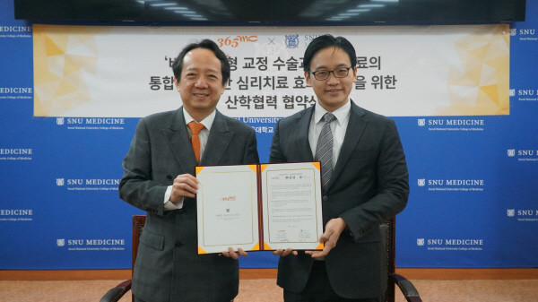 지난 15일 서울대학교 의과대학에서 365mc와 서울대학교 의과대학 최형진 교수 연구팀이 ‘비만 체형 교정술과 심리치료의 통합적인 비만 심리치료 효과 검증’을 위한 산학 협력 협약을 맺었다. 전세계의 폭발적인 비만 인구 증가로 당뇨병, 심근경색, 뇌졸중, 암 등의 만성 신체 질환뿐만 아니라 자존감 저하, 우울, 불안, 스트레스, 자살 충동, 사회성 저하 등 정신 병리적 문제들도 대두되고 있다.