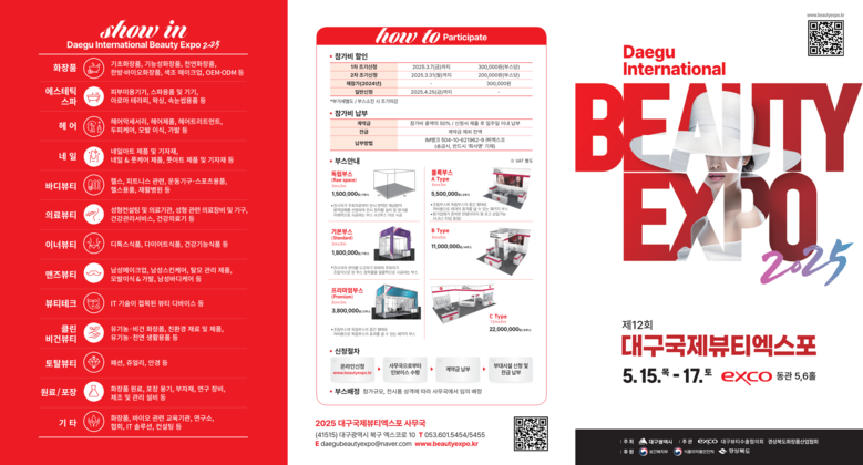 참관을 원하는 분들은 5월 14일(수) 18시까지 ‘2025 대구국제뷰티엑스포 홈페이지(https://www.beautyexpo.kr)에서 사전등록할 경우 무료로 관람할 수 있다.