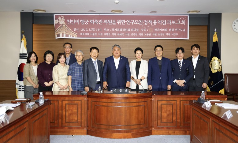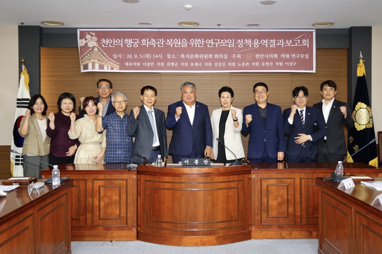 [천안시 세계타임즈=백택기 기자] 천안시의회 「천안의 행궁 화축관 복원을 위한 연구모임」대표 이종만 의원은 9월 5일(목) 복지문화위원회 회의실에서 정책용역 결과보고회를 진행했다.