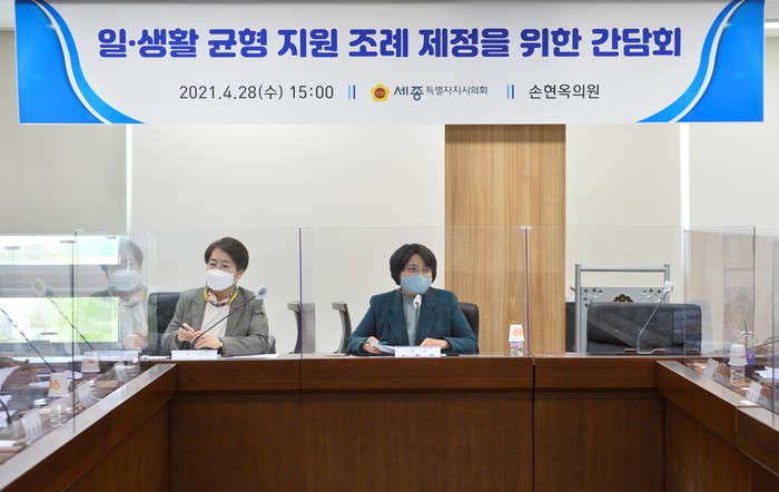 [세종=세계타임즈 이채봉 기자] 세종특별자치시의회 손현옥 의원(고운동)은 28일 의회청사 의정실에서 ‘세종특별자치시 일‧생활 균형 지원 조례’ 제정을 위한 간담회를 개최하고, 정책 실효성 향상을 위한 워라밸(Work and Life Balance) 분야 전문가와 관계 공무원의 의견을 청취했다.