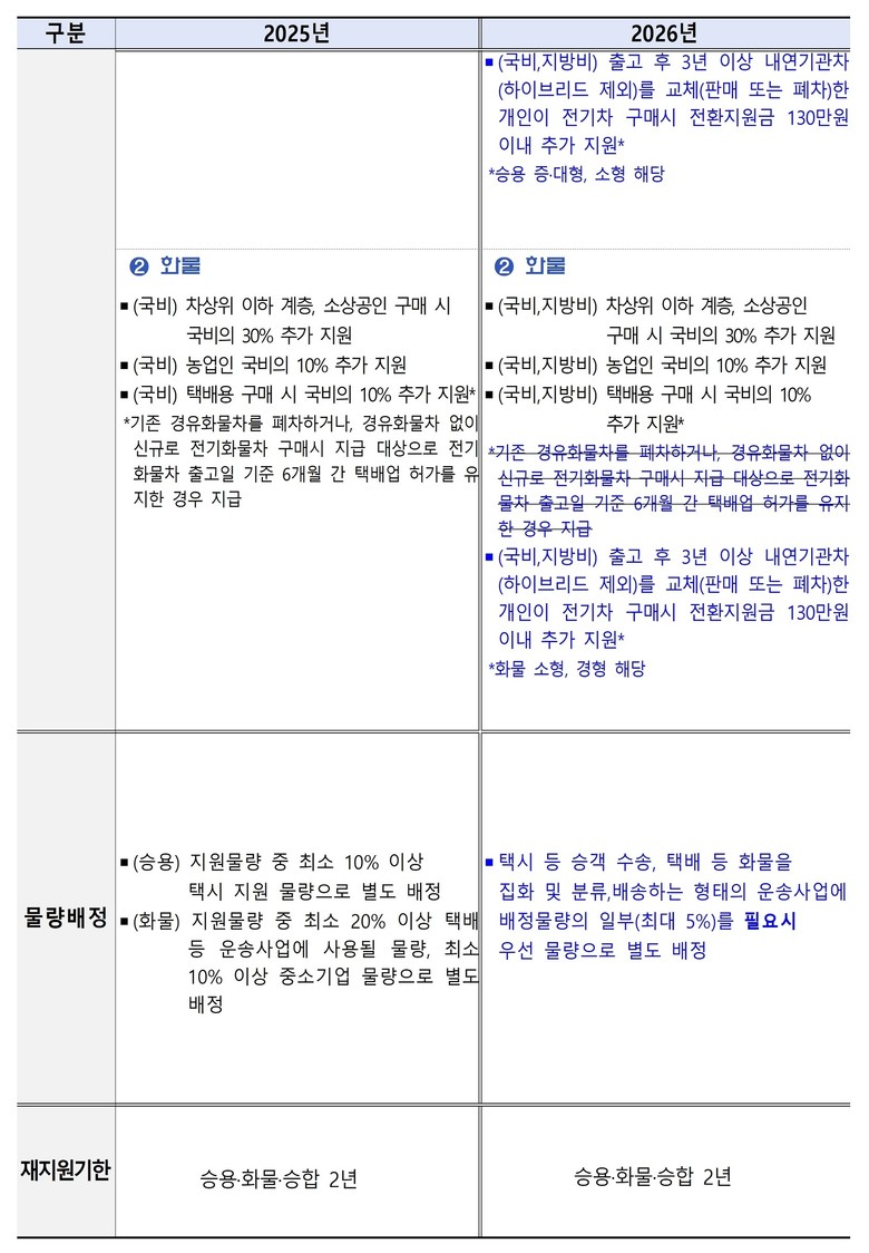 - 내연기관차 폐차․매도 후 구매 시 혜택(최대 130만원), 지원범위 등 확대