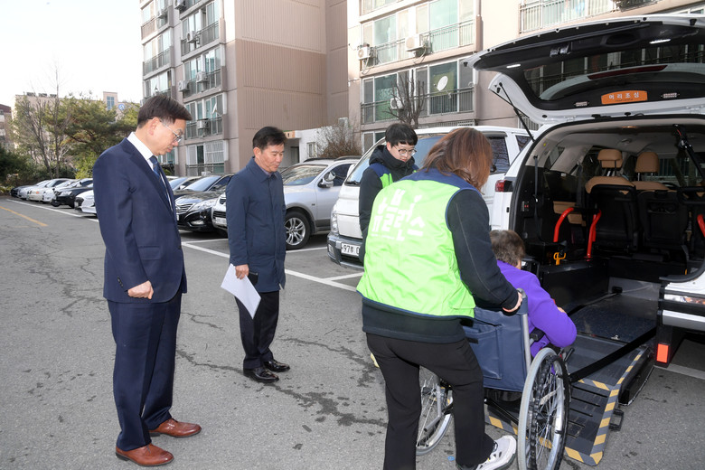 이어 늘행복마을건강센터와 휴블런스센터에 방문해 광주다움 통합돌봄 특화사업으로 시행하고 있는 거동불편 중증질환자 이동 및 진료지원(차량지원) 서비스 대상자를 만나 의견을 청취했다.