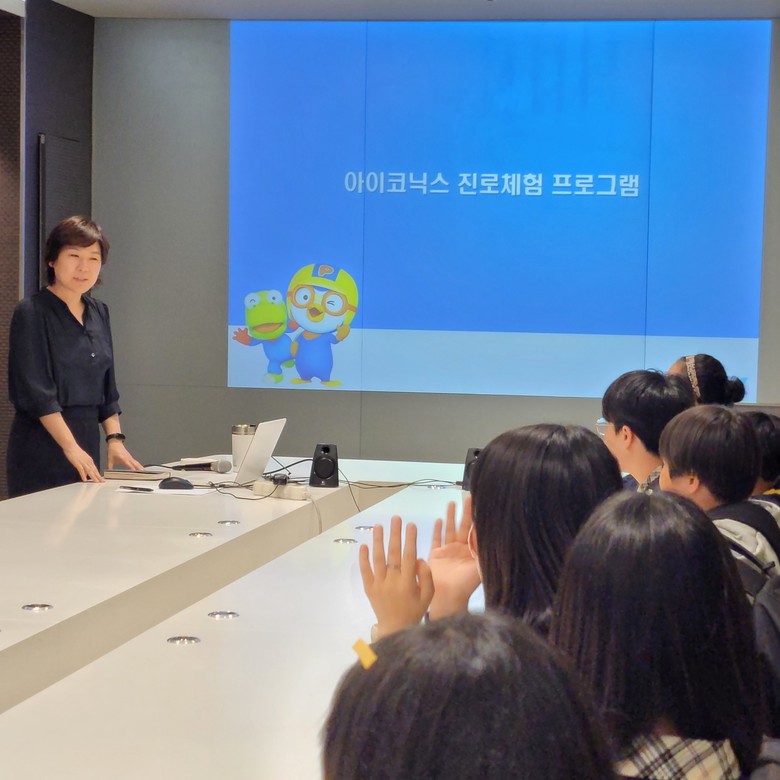 경기도청소년수련원 지원 사업인 [학생과 기업이 만나는 진로체험]에 선정되어 ‘뽀로로’제작사인 ㈜아이코닉스를 방문했다.