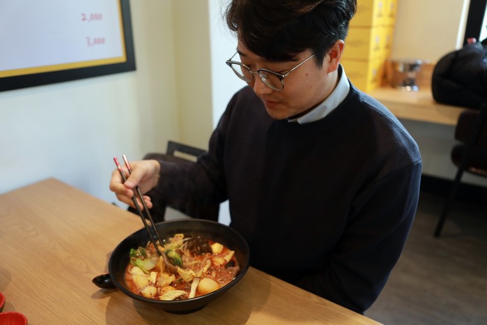 | ▲한 직장인이 마라탕을 즐기고 있다. |