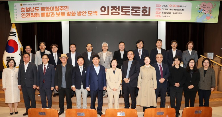 충남도의회와 도솔문화포럼은 30일 천안교육지원청 대회실에서 ‘충청남도 북한이탈주민 인권침해 예방과 보호 강화 방안 모색’을 주제로 의정토론회를 공동 개최했다.