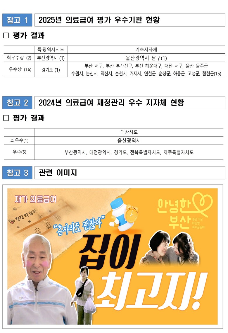 또한 ▲장기 입원 수급자의 퇴원 후 지역사회 생활을 지원하는 ‘재가의료급여’ 사업 대상 확대와 구·군별 격차 최소화를 위해 노력했고, ▲시 특화 사업으로 다빈도 약물 이용자에게 약사 자문(컨설팅)을 제공하는 ‘약지솔’ 사업을 운영했다.