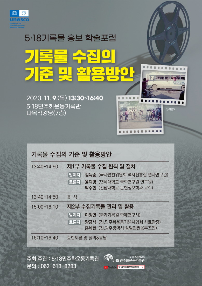 홍인화 5‧18민주화운동기록관장은 “5·18기록물 홍보 학술포럼을 통해 5‧18민주화운동 기록물 수집이 활성화되고 다양하게 활용돼 5·18 정신이 널리 확산되길 바란다”고 말했다.
