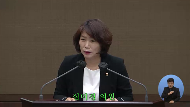 | ▲ 심미경 서울시의원이 서울시의회 331회 정례회에서 5분발언을 하고 있다. |