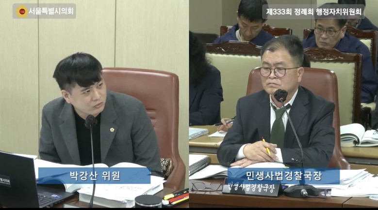 [서울 세계타임즈=이장성 기자] 서울시의회 박강산 의원(더불어민주당‧비례대표)은 7일 서울시 민생사법경찰국 대상으로 한 2025년도 행정자치위원회 행정사무감사에서 성과지표가 시민의 체감에 동떨어진 지표로 운영되고 있다며 전면적인 개선을 촉구했다.