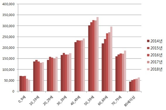 | ▲ 연령별 과민성장 증후군 환자 수 |